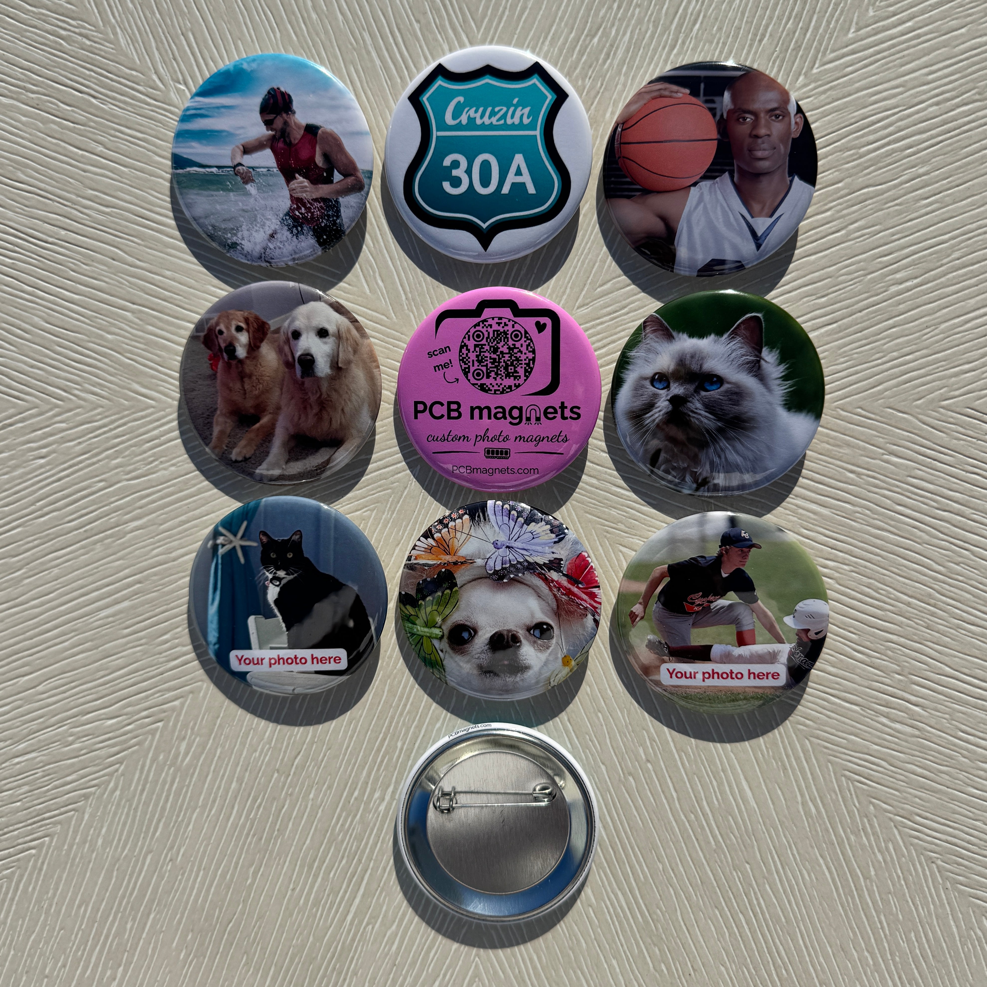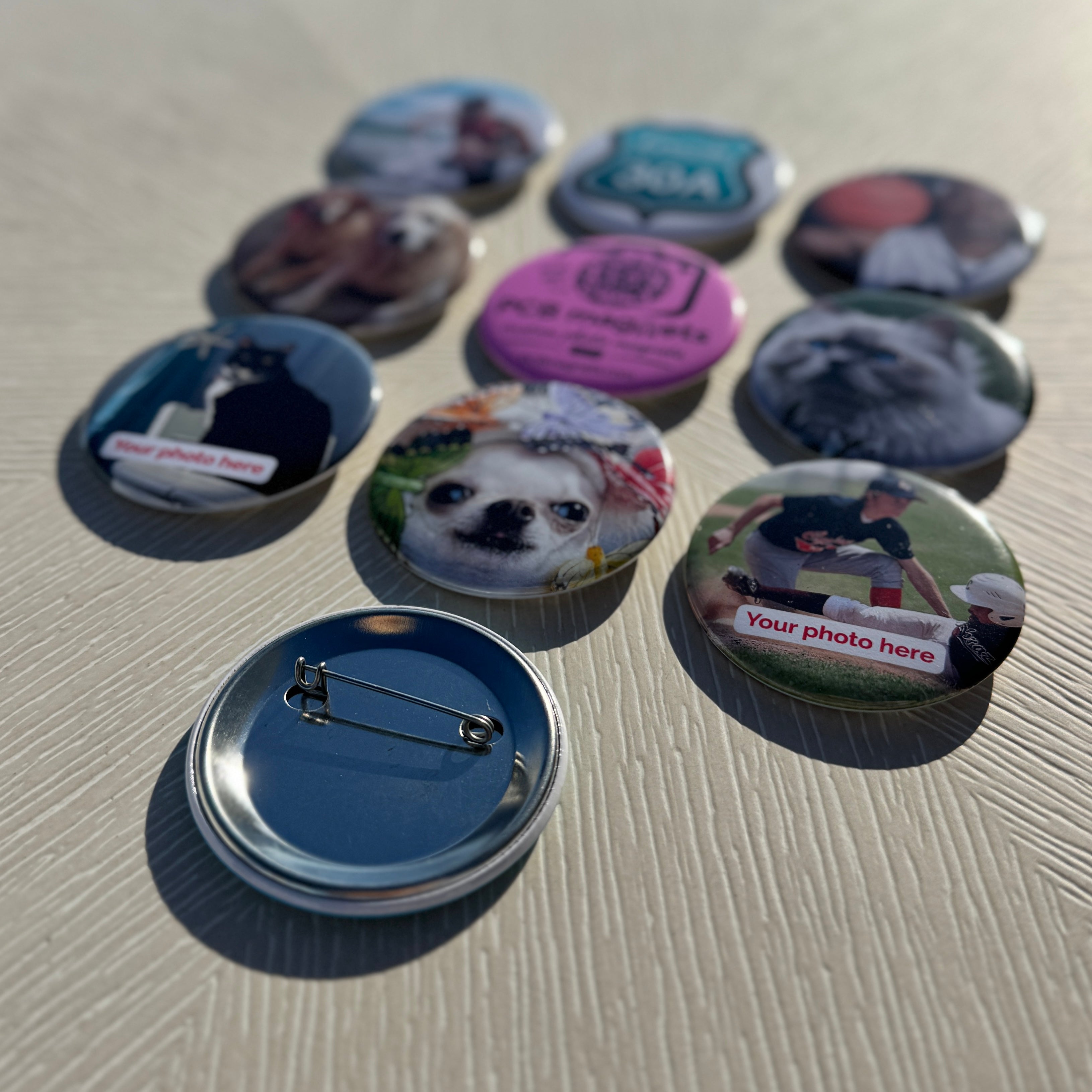 Whether you're celebrating a birthday, rallying a team, or just want to rock your pet's face on your jacket or backpack, we make it super easy to create one-of-a-kind buttons that make a statement. Snap it. Pin it. Wear it. Repeat.